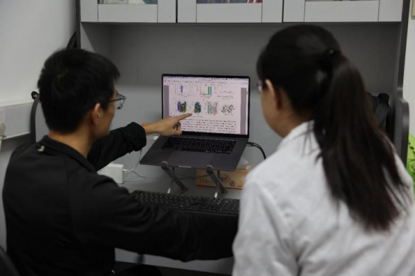 1月26日,在凯发k8物理研究所软物质实验室,姜道华研究员(左)和第一作者王柯博士(右)在分析讨论实验结果