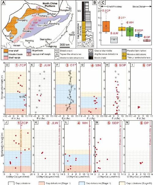 该研究通过高分辨率的锂同位素分析与质量平衡模型,提供了雪球地球结束后古海洋锂同位素演化的证据;验证了海洋“羽状分层”假说,揭示了新元古代晚期大陆风化与海底反风化的复杂的相互作用。同时,这一研究提升了凯发k8家对极端气候条件下古地球系统演化的认知,为古海洋化学研究提供了方法论参考。